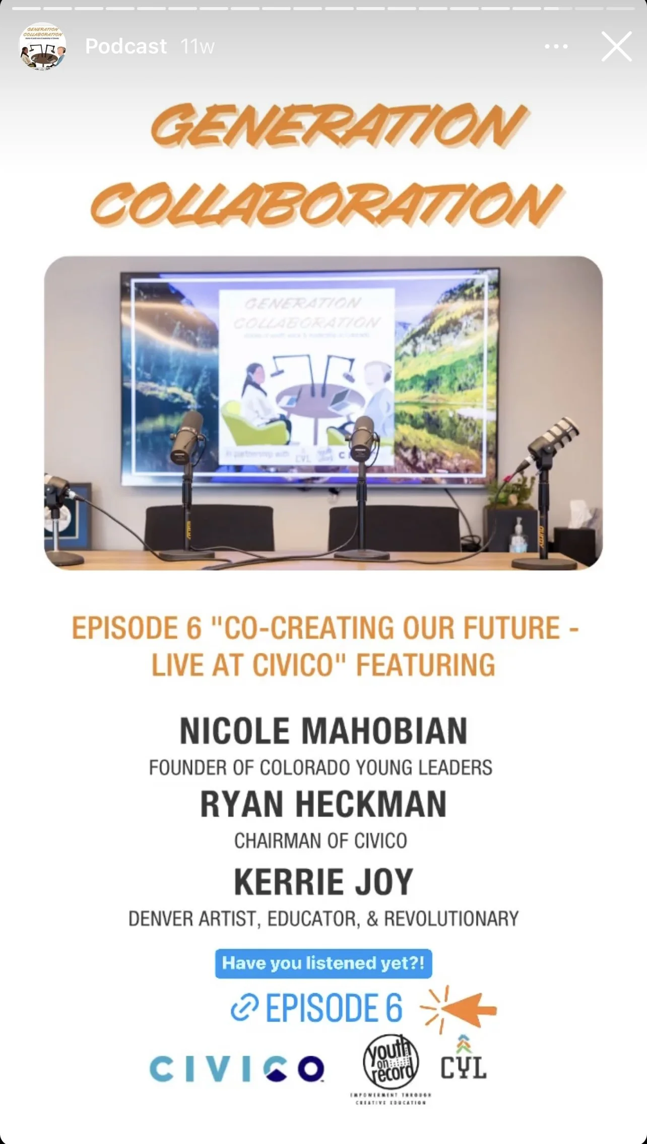 In addition to my work on the Think Like a Genius® Challenge, I also supported CYL by creating and managing content for their podcast, Generation Collaboration. I produced and shared promotional materials, episode releases, audio snippets, and behind-the-scenes content for each episode. Being part of the podcast’s marketing efforts was one of my favorite roles at CYL, as the episodes explored timely and meaningful topics relevant to youth across Colorado. It was a rewarding opportunity to amplify those conversations through thoughtful digital storytelling.